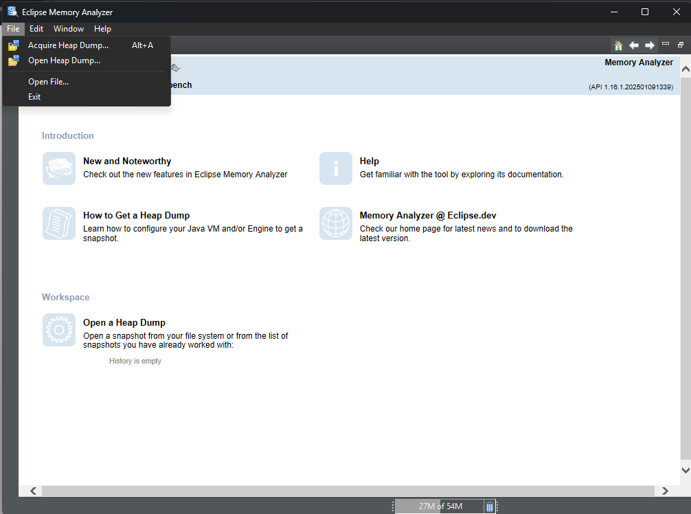 Once we open MAT, we'll need to click "Files", then "Open Heap Dump"